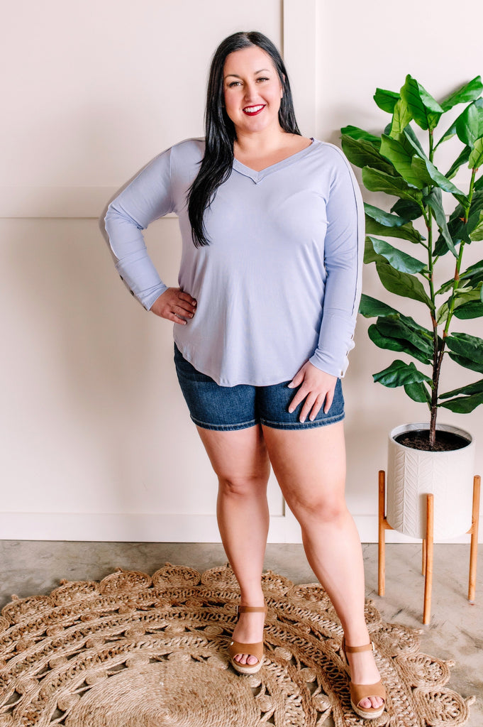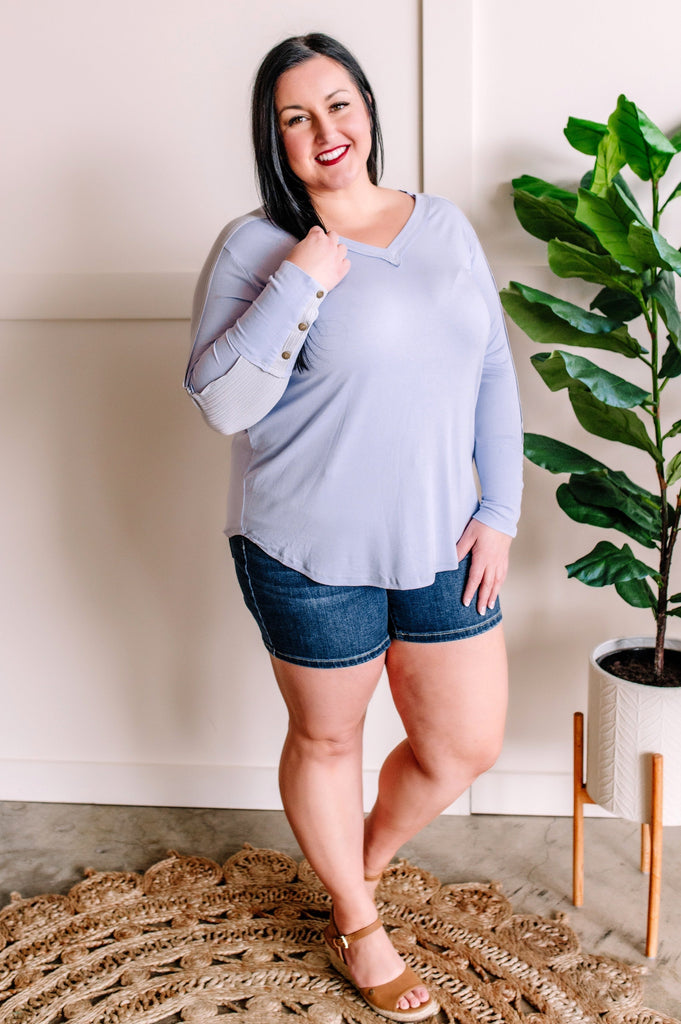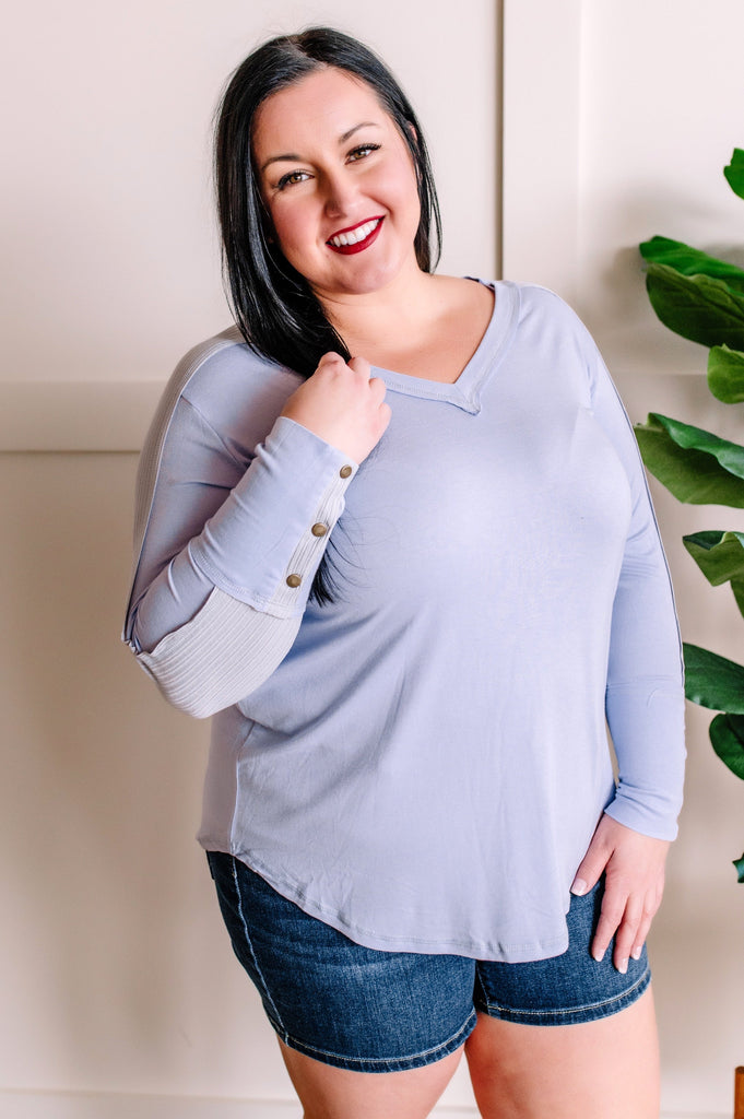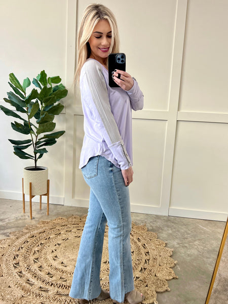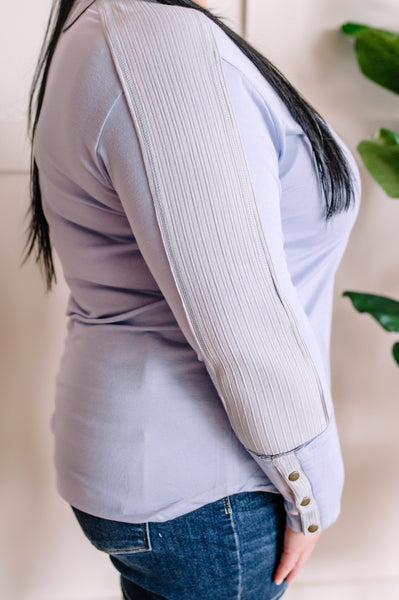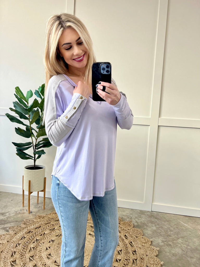 Snap Cuff Detail Long Sleeve Top In Lavender & Silver