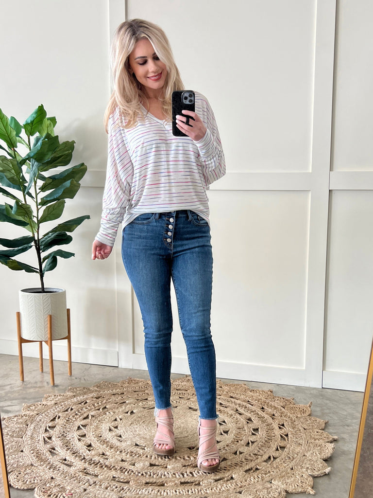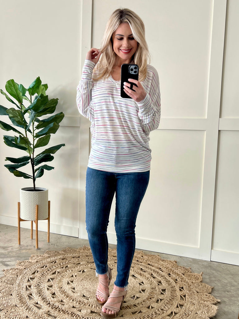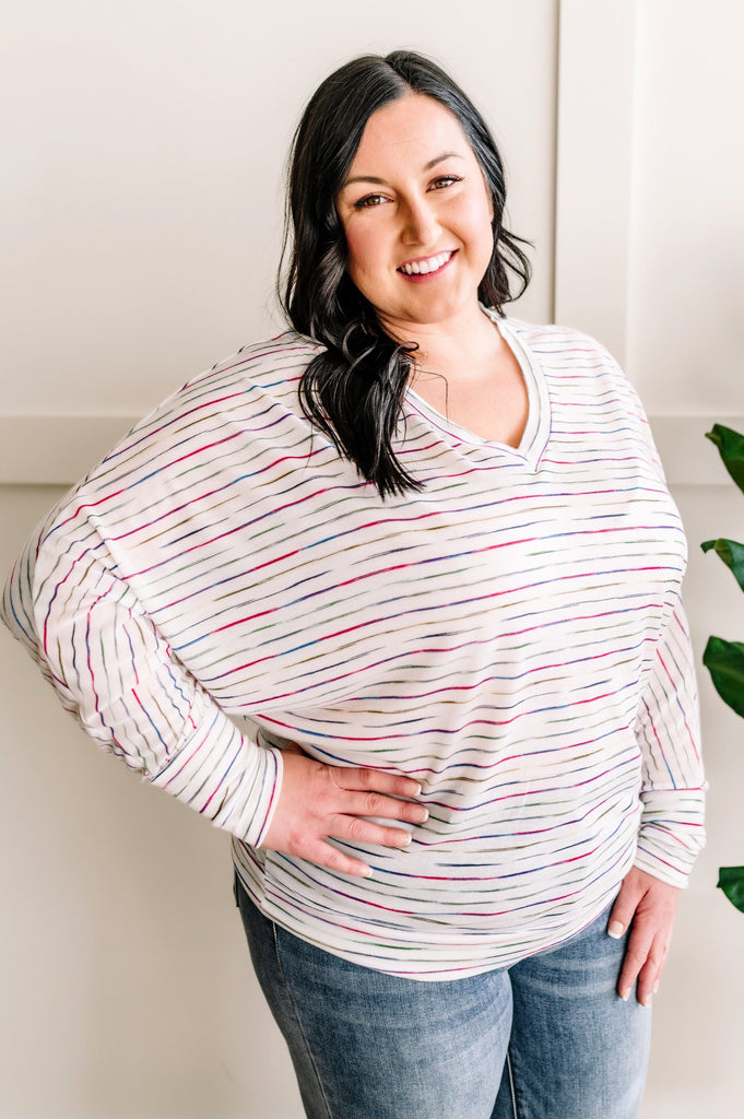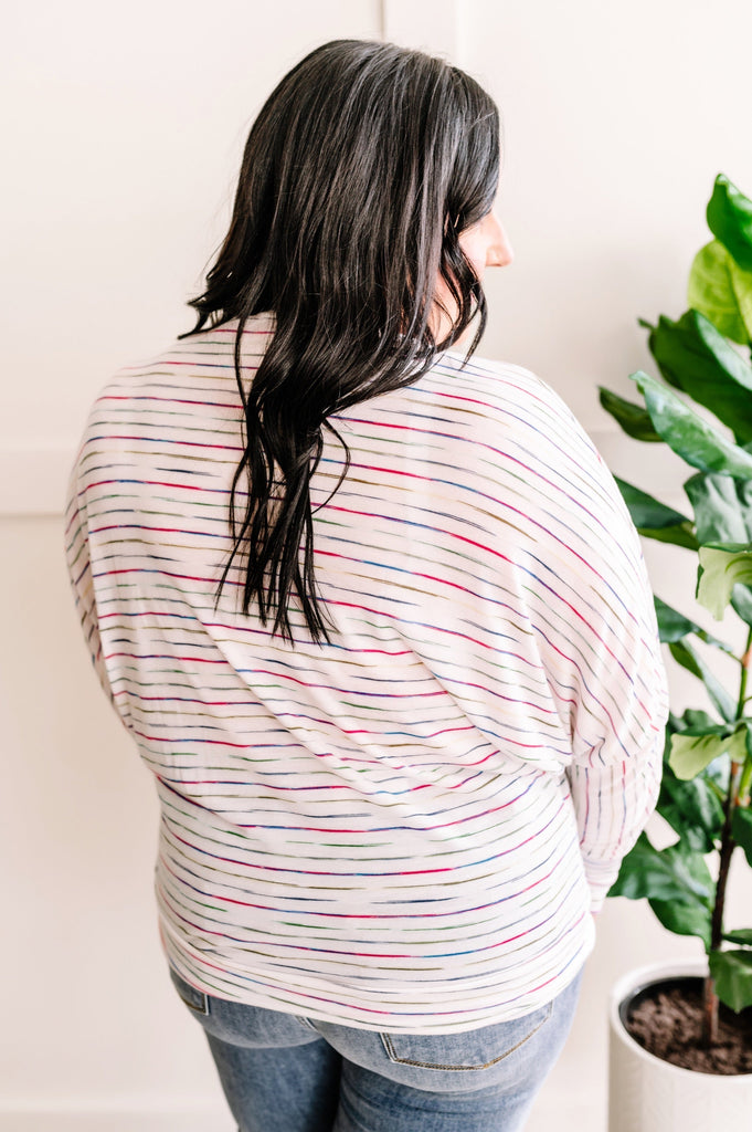 Subtle Rainbow Colors Dolman Sleeve Knit Top