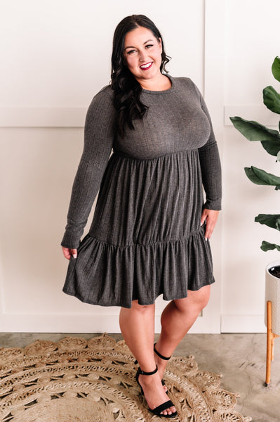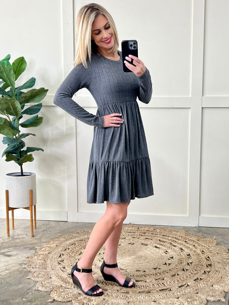 Sweater Knit Tiered Dress In Shadow