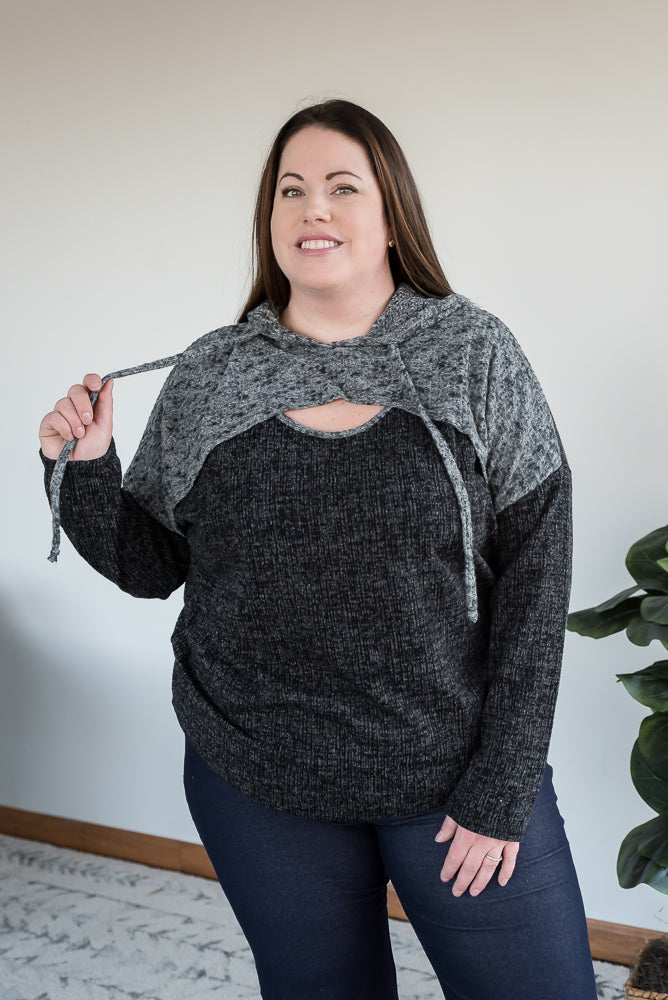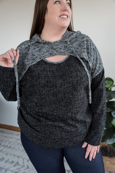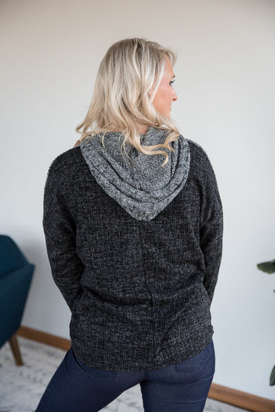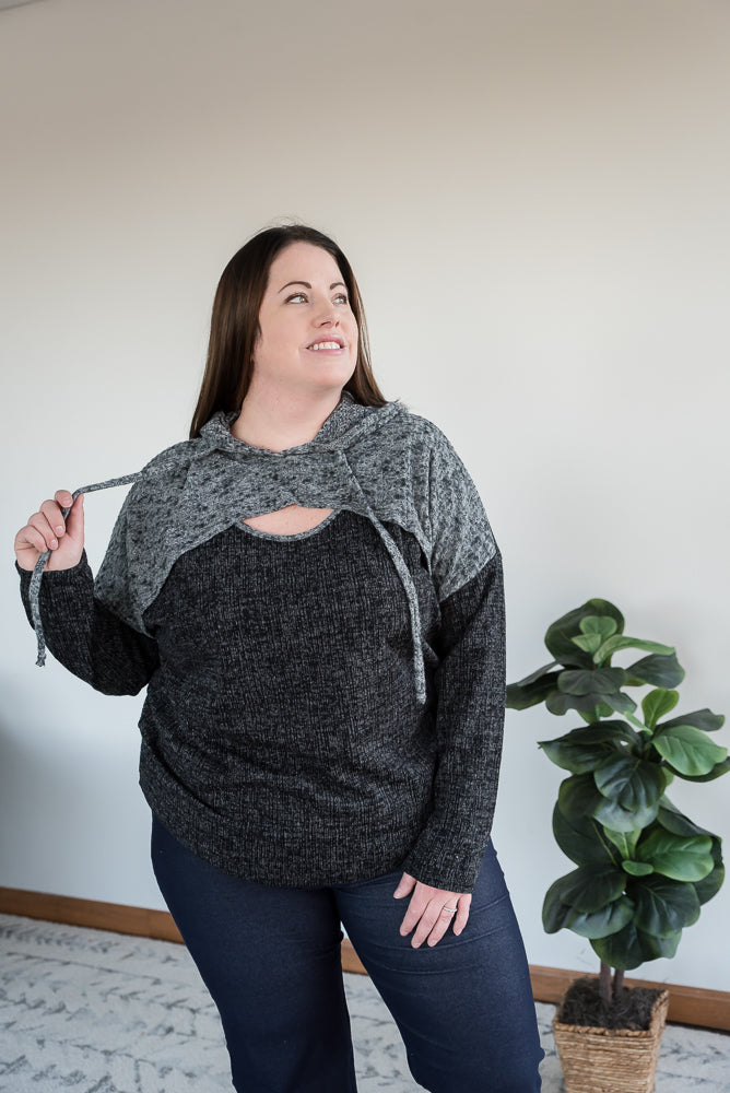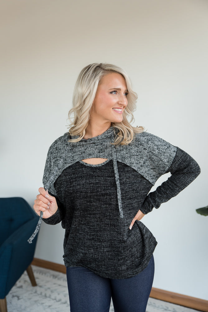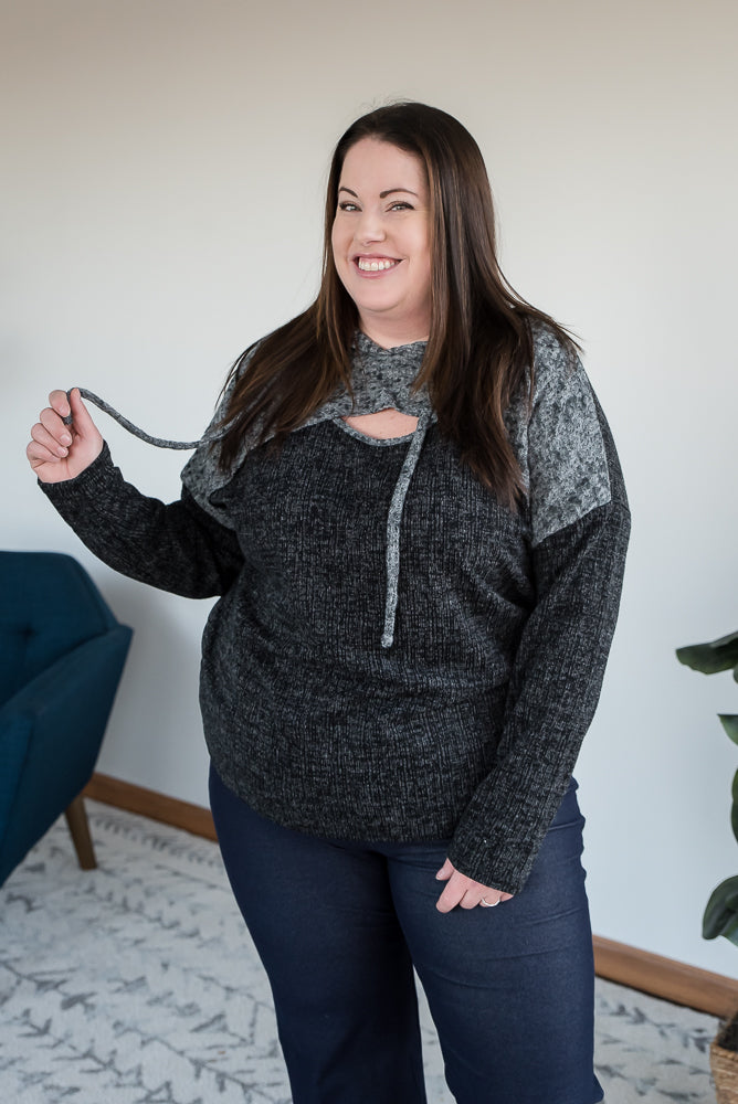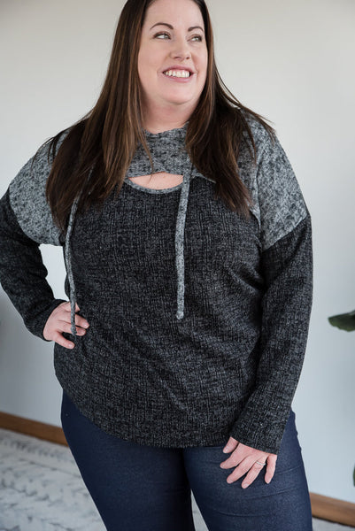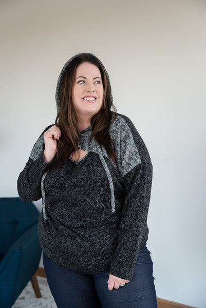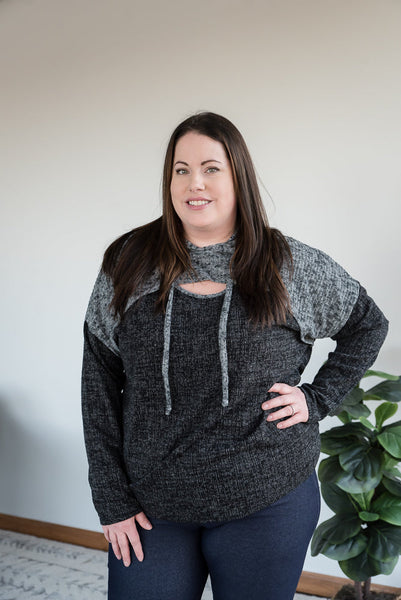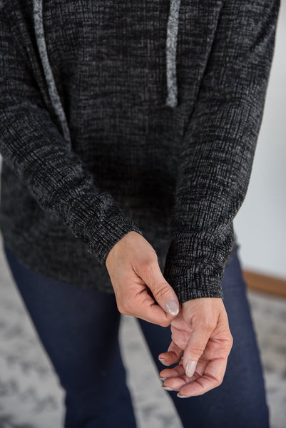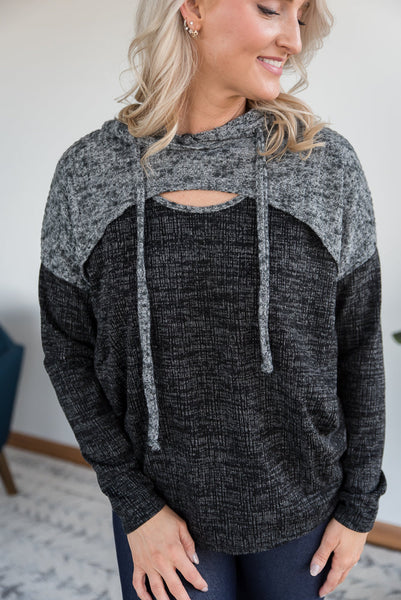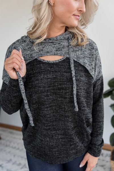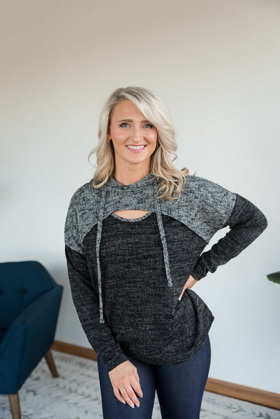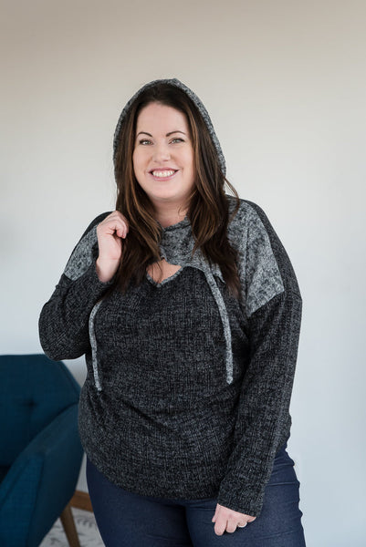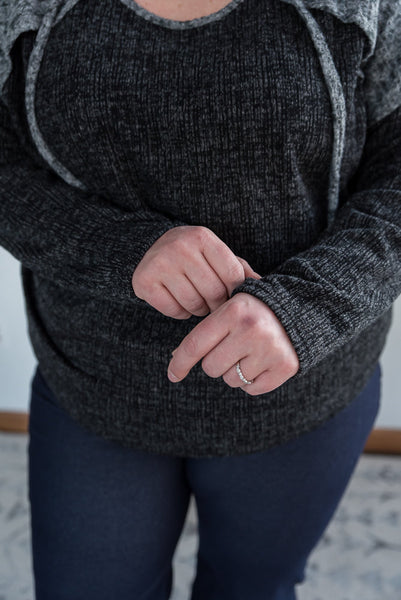 Be ready for a new day in our black and gray hoodie! The long sleeve hoodie has adjustable drawstrings and a front keyhole. This incredible lightweight, brushed ribbed fabric is perfect for the season.