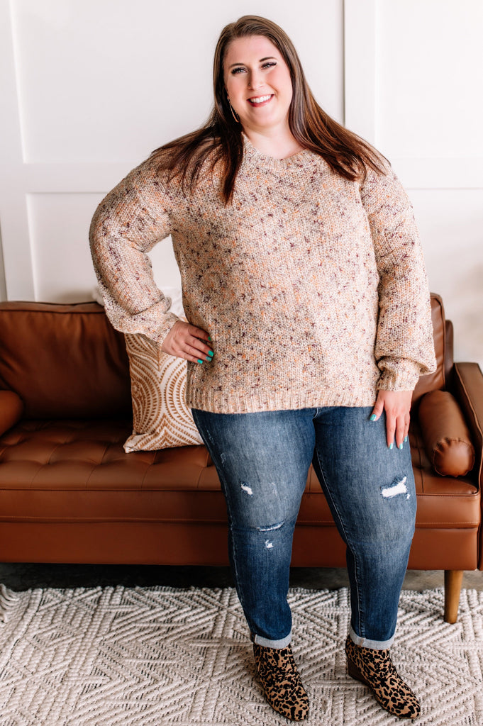 - Fits relaxed, can size down or stay true to size for that cozy sweater fit